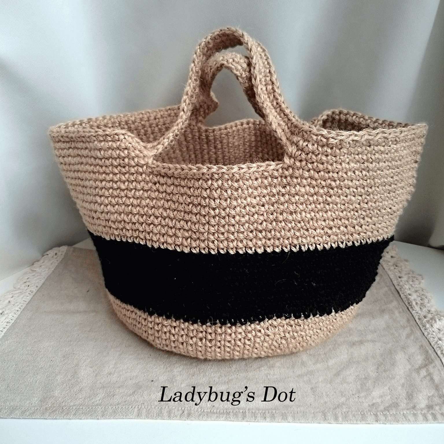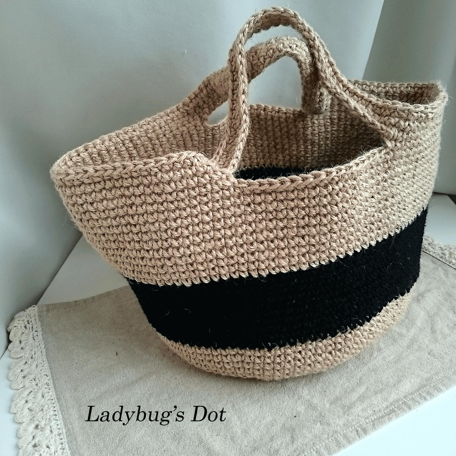 麻マルシェバッグ バイカラー黒