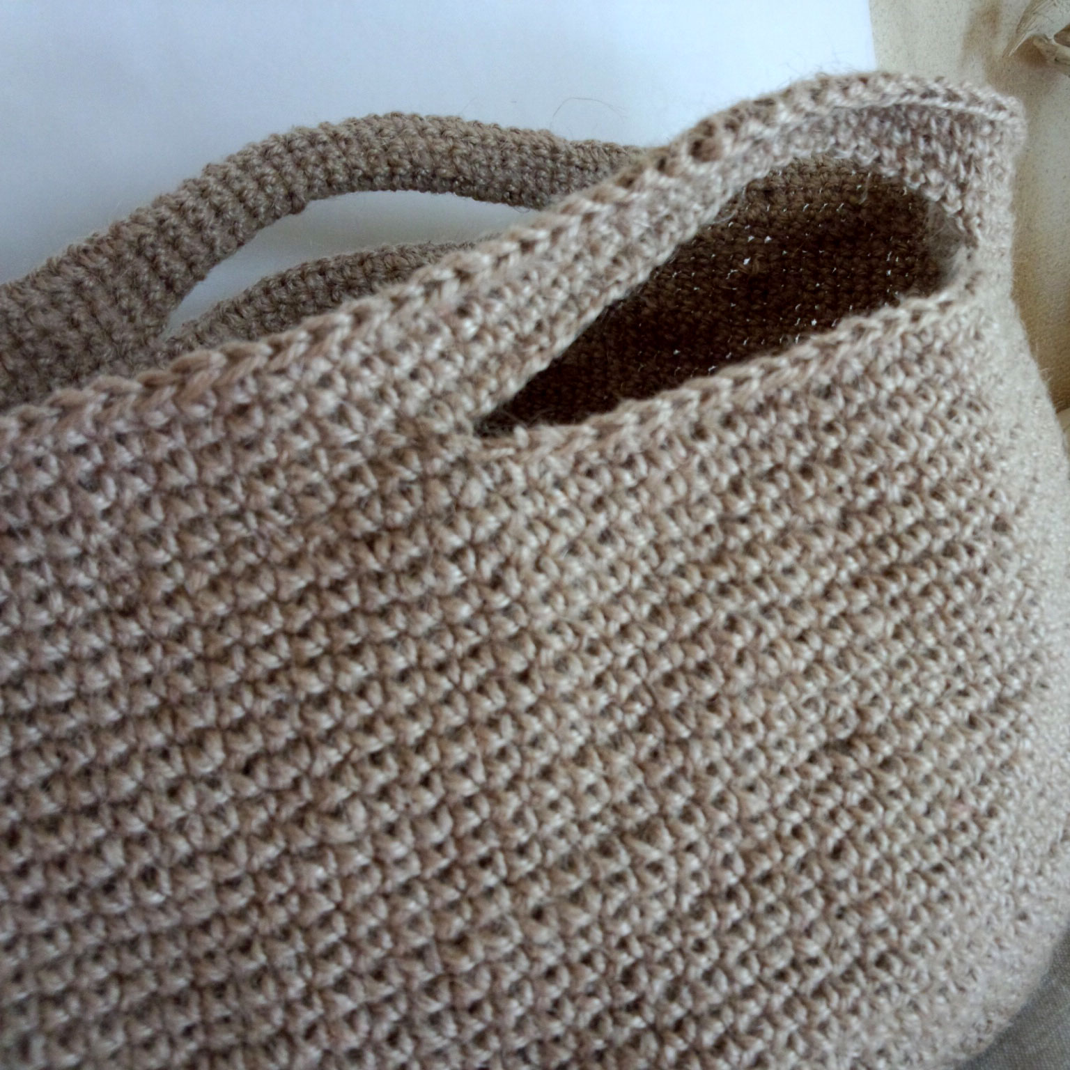 中長編みの麻マルシェバッグ 丸底ライト