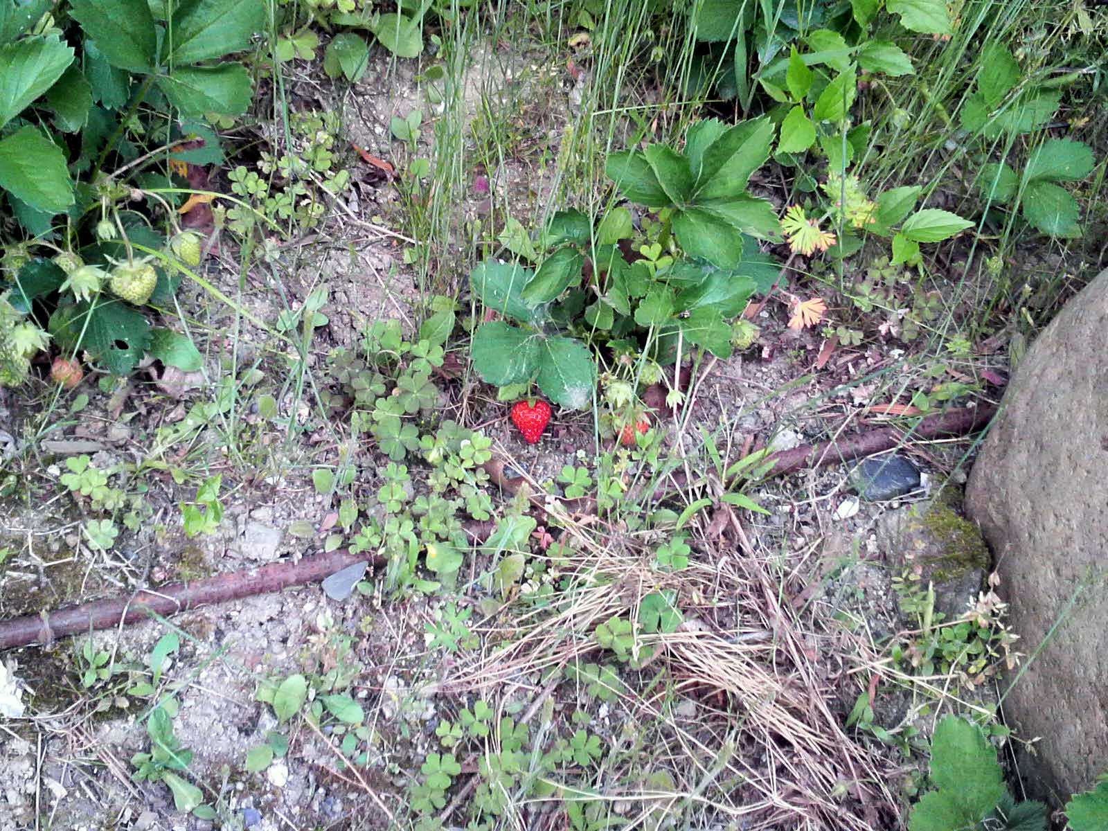 兜の散歩に行ったらヘビイチゴを見つけました。