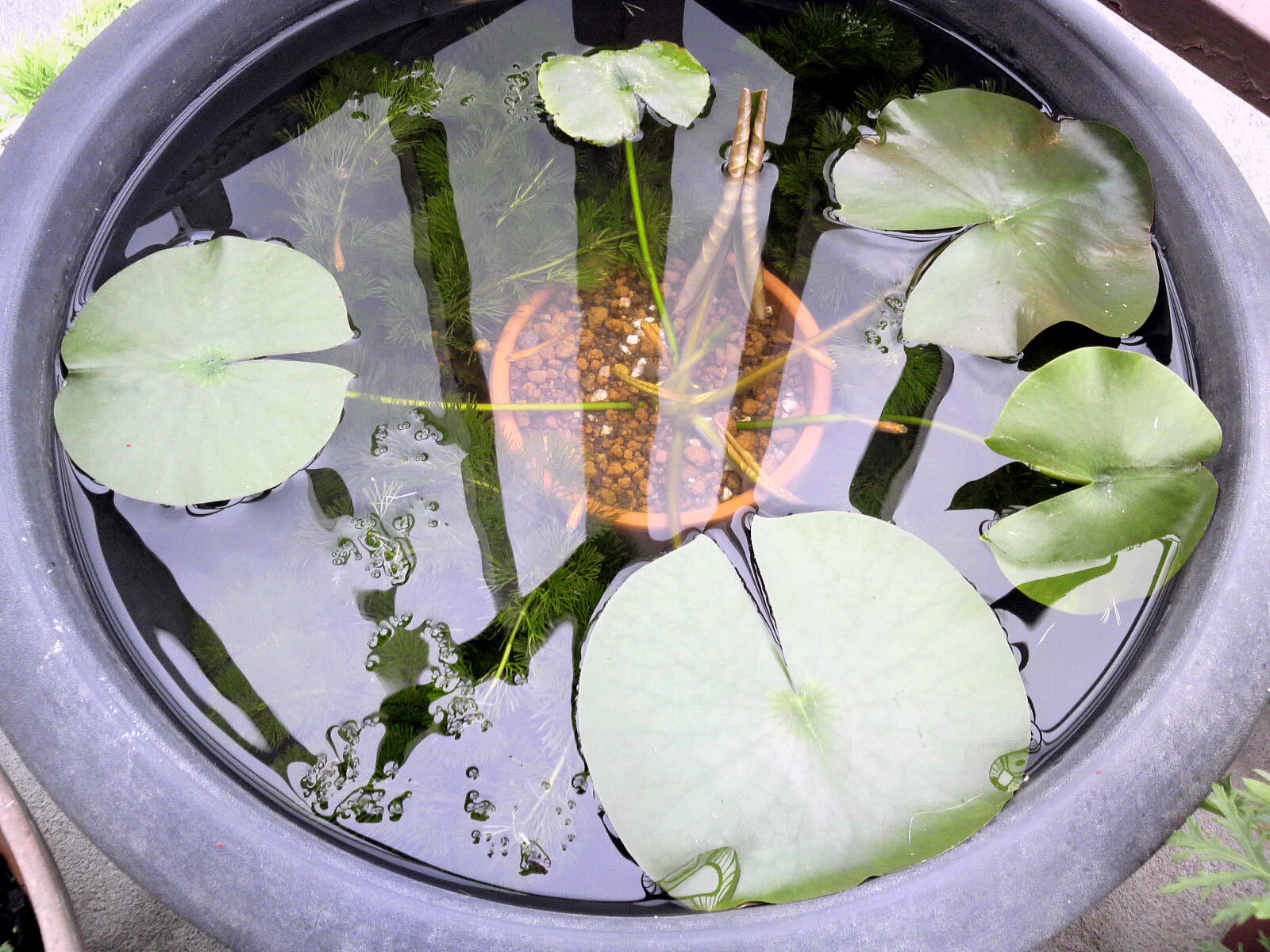 睡蓮を植えた素焼きの鉢を平鉢にしなかったのがいけなかったのか。