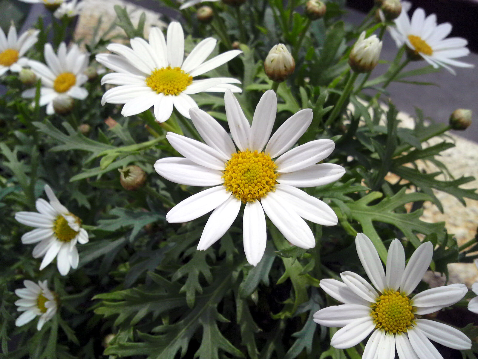 違う鉢のマーガレットは2期目の花をつけ始め